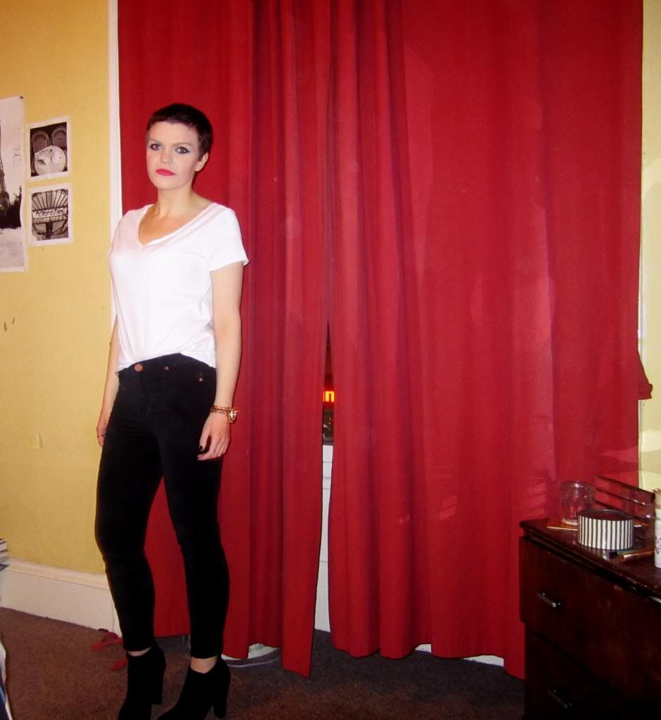 Tshirt H&M . Velvet Trousers & Watch River Island . Boots New Look . Lipstick Mix of Sleek Papaya Punch & 17 Hot Chilli . Rings (not seen) Accessorise & ASOS .